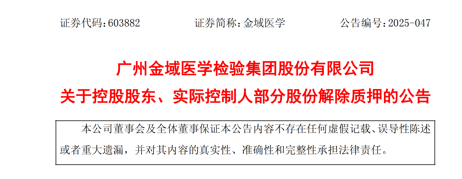 医学诊断行业在经历特殊时期的业务高峰后,正进入结构性调整阶段。作为行业代表性上市公司,金域医学(603882.SH)和迪安诊断(300244.SZ)控股股东近期的股权质押操作,展现出不同的资本策略思路。