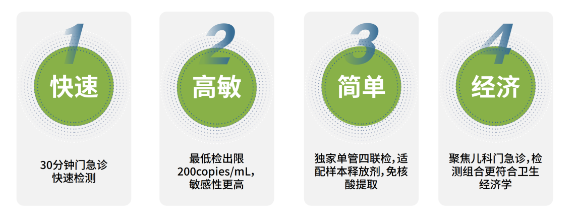 检测靶标:甲型流感病毒/乙型流感病毒/呼吸道合胞病毒