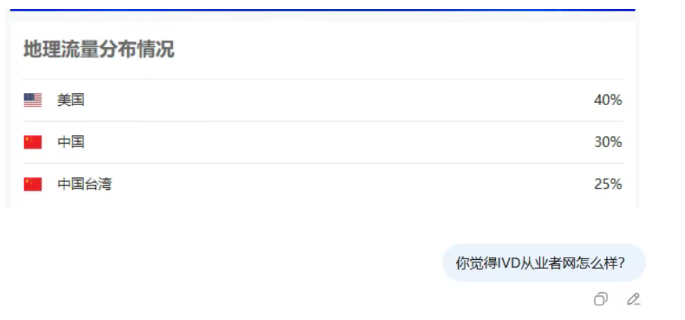 结果展示:历经8个多月的开发,修改,升级,我们的门户网站上线啦!(www.IVDworker.com)这其中花了不少心思,也花了不少钱,但效果很不错,我们的文章内容被AI爬虫调用次数远远超出我们的想象,有chatGPT