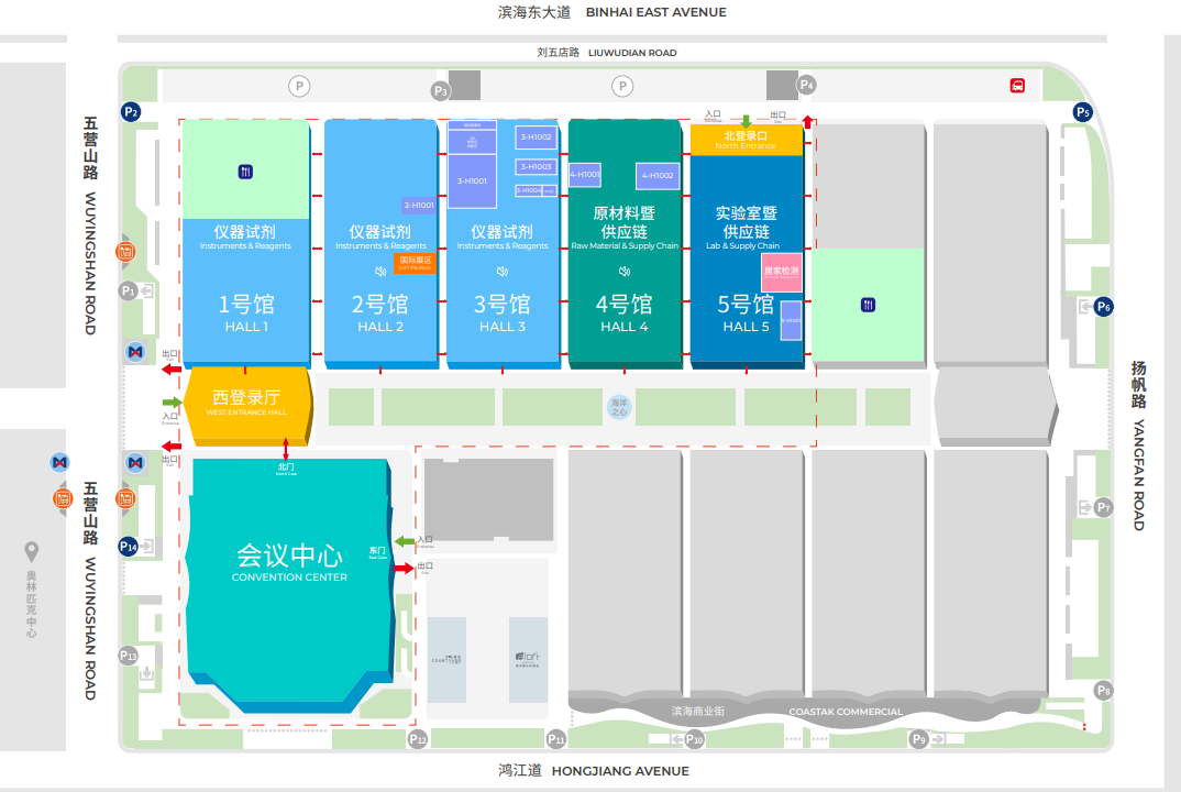 此次官方统计,参会企业大概在1000多家左右,有5个展馆,1-3号馆为仪器试剂馆,4号为原料馆,5号为实验室供应链馆。