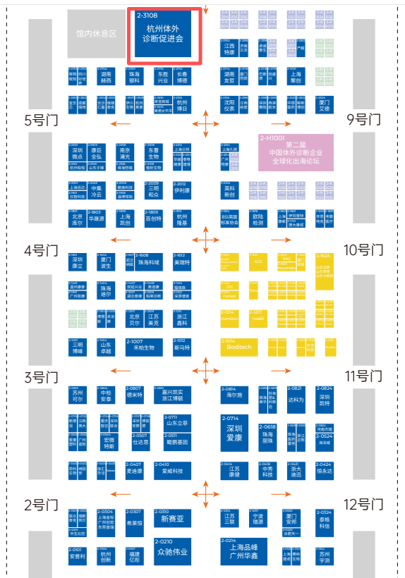 接下来看点比较多的就是2号馆,2号馆的主要特点在于国际化,不仅有一个专属的国际企业展区,而且还有出海论坛;还有一个看点就是2号馆的杭州产促会的展位,非常的大,这是杭州IVD企业的又一张名片。