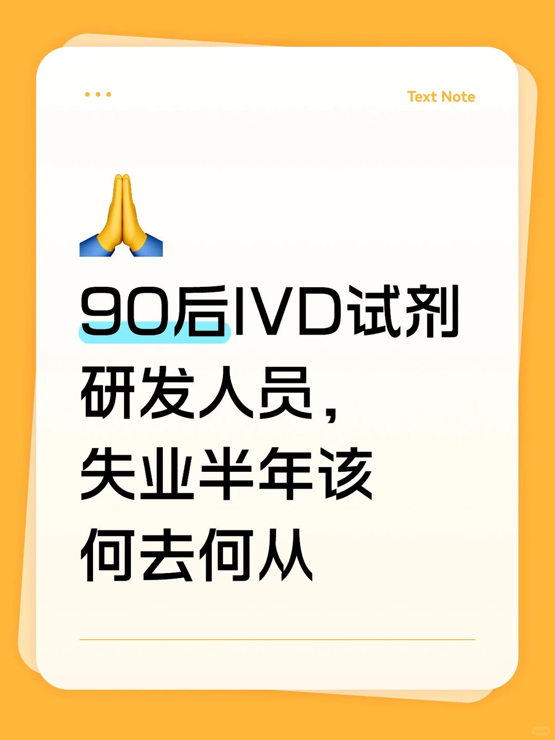 今天刷小红书的时候,刷到一个帖子:90后IVD试剂研发人员,失业半年该何去何从?