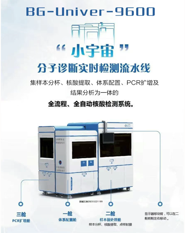 近日,国家药监局批准了伯杰医疗的全自动核酸检测分析系统BG-Univer-9600,这块被称为“小宇宙”的全自动分子诊断流水线究竟有哪些看点呢?今天给大家分析分析。