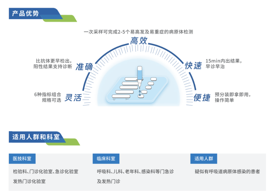 以胶体金为代表的抗原检测阳性支持诊断,具有速度快捷,操作简便,成本低廉,可及性强等优势,对于急需诊断的患者和快速筛查大量人群至关重要,是核酸检测的重要补充。而抗原检测获批产品主要以单指标或甲乙流二联抗原为主,缺乏针对常见病原体的更灵活多样的高效联检产品。