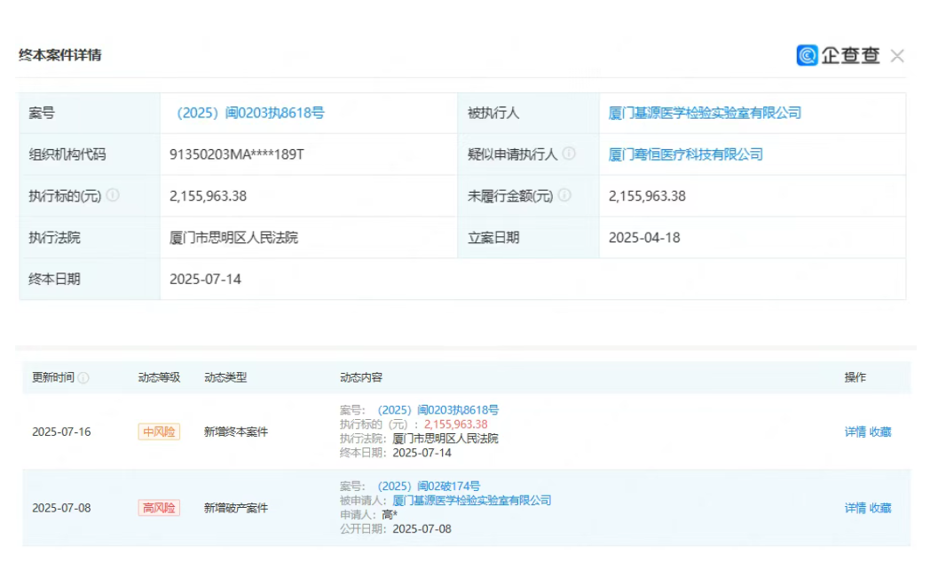据了解,厦门基源医学检验实验室有限公司成立于2018-04-17,法定代表人为姚迅,注册资本为500万元,经营范围包含:医学检验实验室;医学研究和试验发展;第三类医疗器械批发;医疗信息咨询服务(不含药品信息服务、疾病诊疗及其他需经许可审批的项目);第一类医疗器械批发;第二类医疗器械批发;生物技术推广服务。企业当前经营状态为存续。