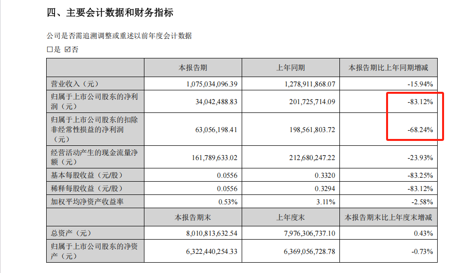 利润端:扣非净利润6305.62万元,同比下降68.24%;经营活动现金流净额1.62亿元,减少23.93%。