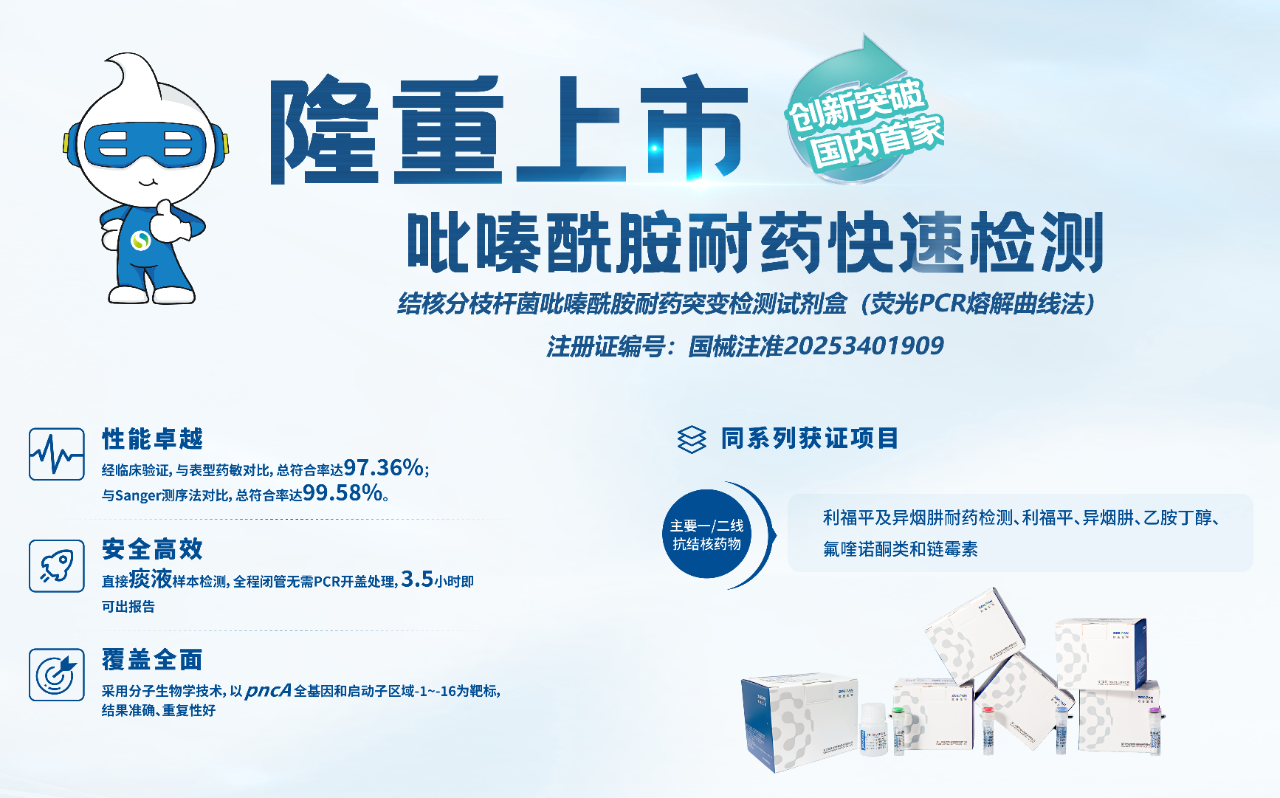 这是国内首款吡嗪酰胺(PZA)耐药分子检测商品化产品,同时也是全球首款基于荧光 PCR 平台的 PZA 耐药分子检测商品化产品。这不仅是一次产品上市,更意味着长期以来困扰临床的PZA耐药检测难题迎来了破局之举,推动了创新技术的临床可及。(注:“商品化”指获得药监部门批准,可在临床应用。)
