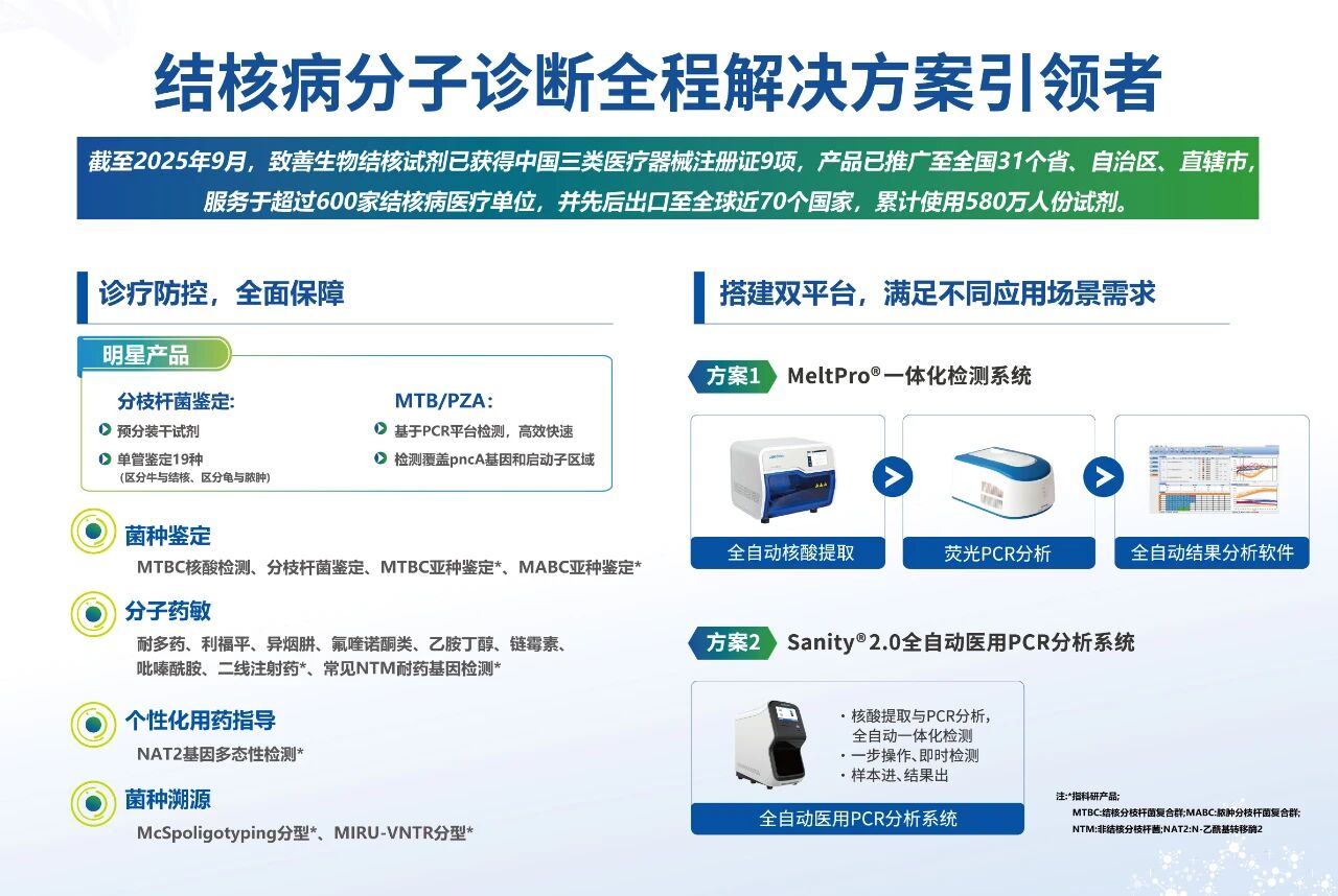 期待致善生物持续拓展结核分子诊断产品矩阵,为临床提供结核病分子诊断整体解决方案,助力结核病诊疗全面迈入精准医疗新时代。