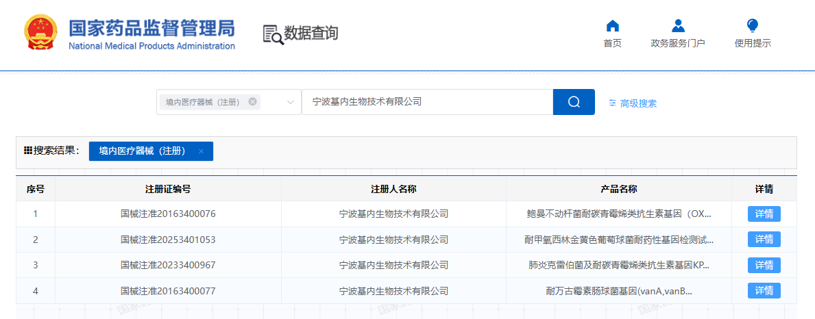 近日,据企查查数据显示,宁波基内生物技术有限公司法人已从翁毅变更为陆修委,而浙江紫荆生物技术有限公司也成为宁波基内生物的大股东, 持股达到了69%。宁波基内生物是一家专业从事细菌耐药基因检测企业,目前已经获证的产品有四款:- 鲍曼不动杆菌耐碳青霉烯类抗生素基因(OXA23)检测试剂盒(荧光PCR法)