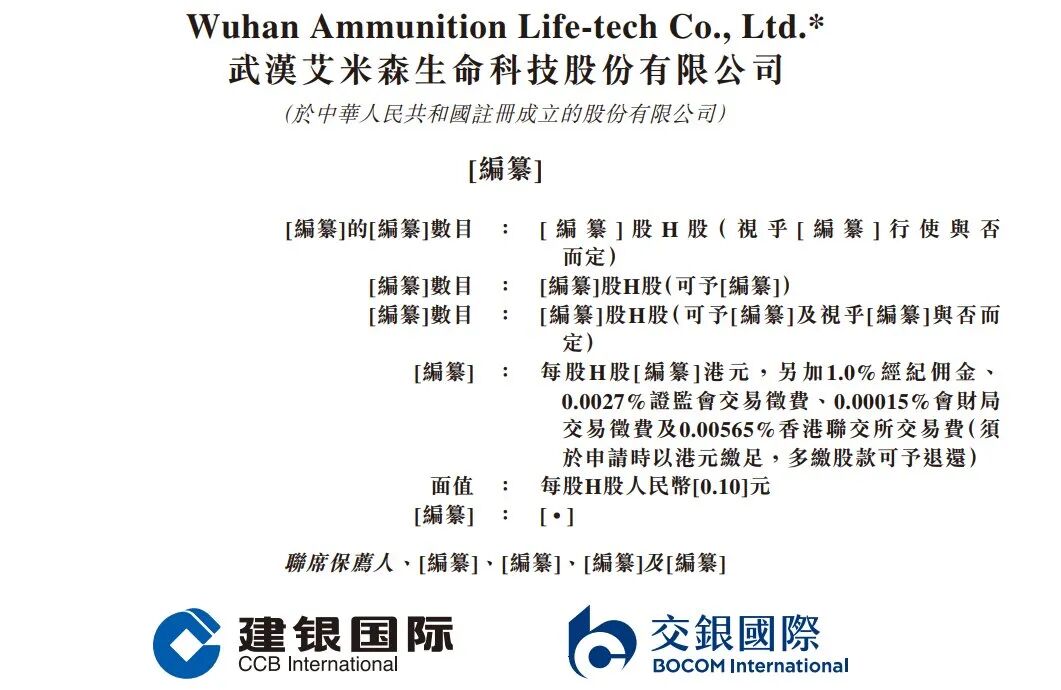 9月28日,武汉艾米森生命科技股份有限公司向港交所主板提交上市申请书,联席保荐人为建银国际、交银国际。