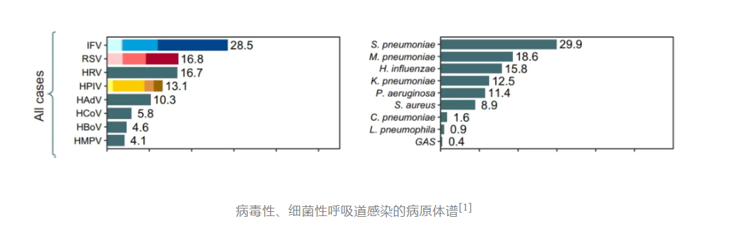 由此可见,流感病毒、呼吸道合胞病毒、腺病毒、副流感病毒及肺炎支原体位列我国呼吸道感染最常见病原体,而临床上呼吸道多联检的重点也应回归基于流行病学证据聚焦的核心病原体。