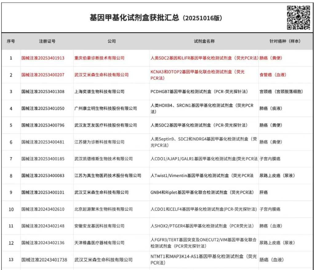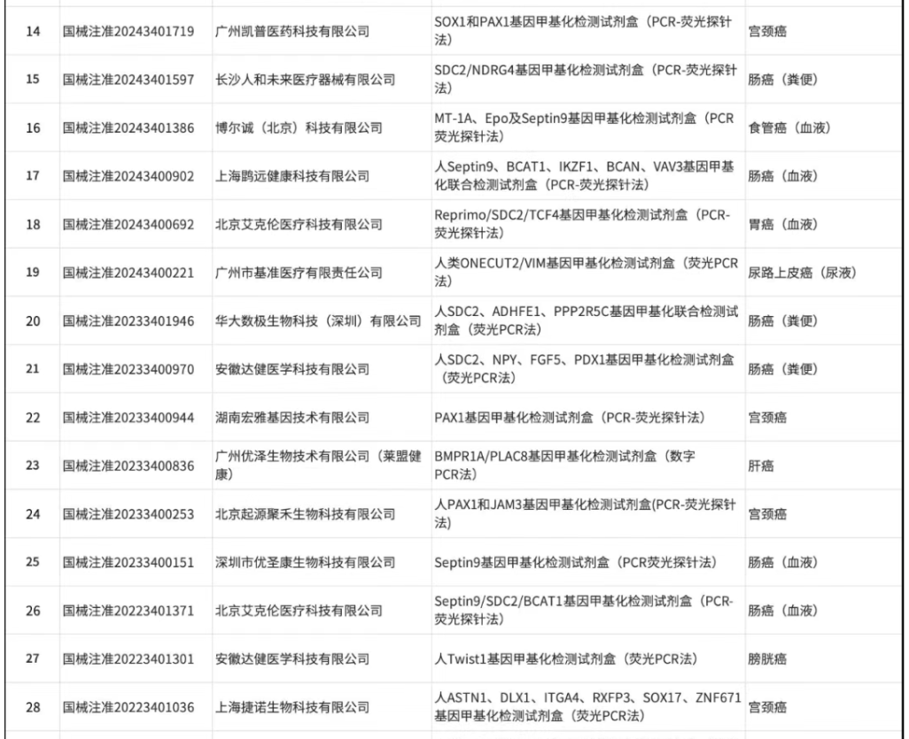 - 统计周期内,重庆伯豪诊断,人类SDC2基因和LIFR基因甲基化检测试剂盒(荧光PCR法)获批上市,用于肠癌早检;