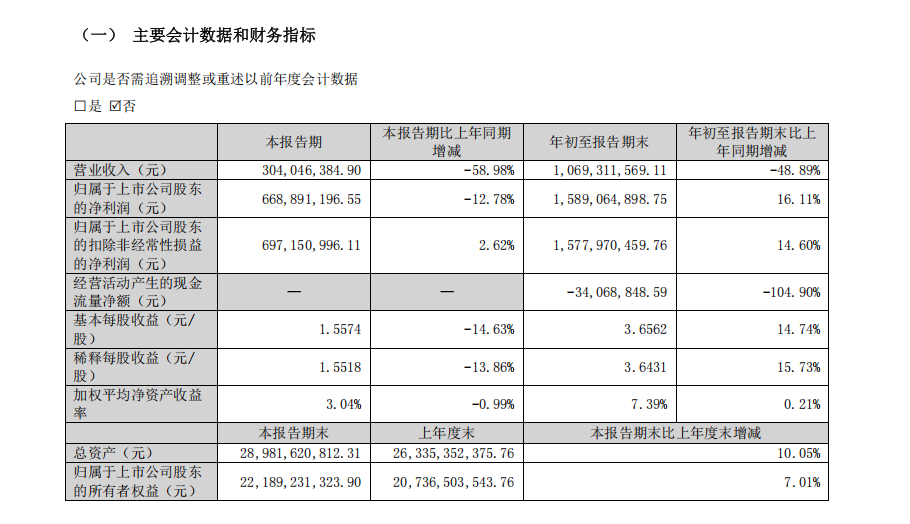 与营收的惨淡形成鲜明对比的是公司的盈利表现。报告期内,公司实现归属于上市公司股东的净利润15.89亿元,同比增长16.11%;扣除非经常性损益后的净利润为15.78亿元,同样增长14.60%。