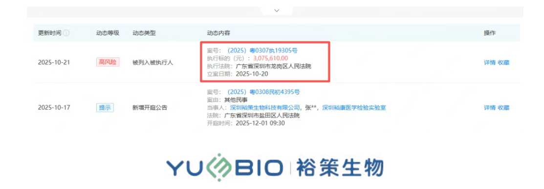 近日,企查查数据显示,深圳裕策生物科技有限公司