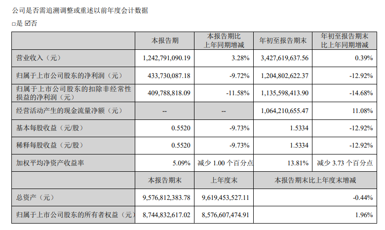 更值得关注的是,第三季度单季营收12.43亿元,同比增长3.28%,环比呈现回暖趋势,成为行业低迷期中难得的“亮点财报”。
