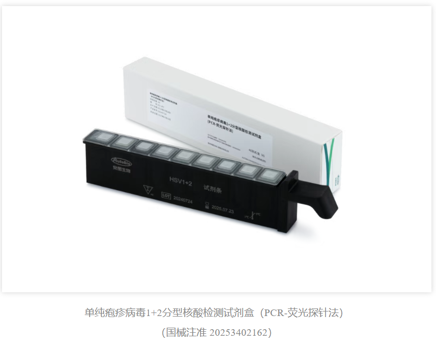 相较传统HSV核酸检测存在手工操作步骤繁琐、流程复杂、需批量处理样本,检测周转时间长等问题,安图生物推出单纯疱疹病毒1+2分型核酸检测试剂盒,可搭载安图全自动核酸检测平台,实现样本随到随测,操作快速便捷,结果精准分型,并突破传统生殖道样本类型的限制,为临床提供更及时、科学的诊疗依据。