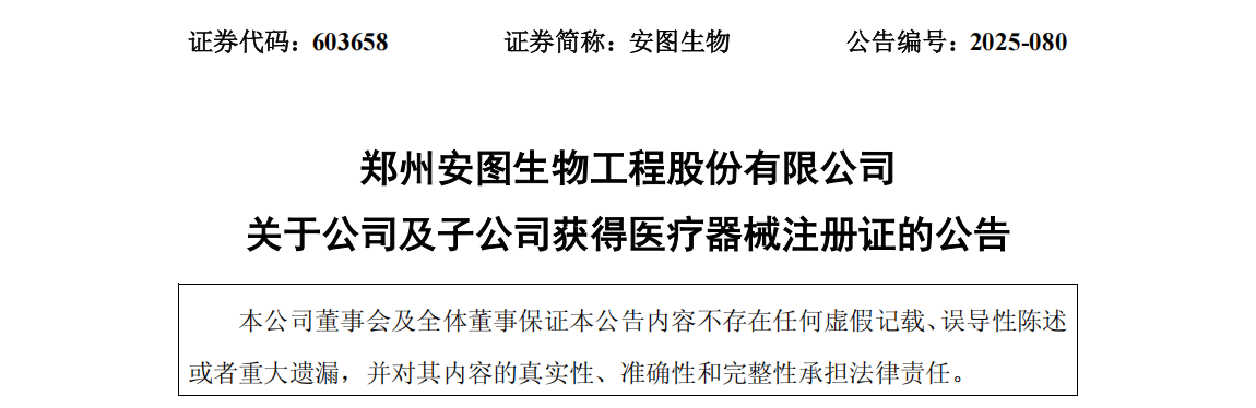 郑州,2025年12月2日– 体外诊断领域领军企业郑州安图生物工程股份有限公司(证券代码:603658)及其子公司近日宣布,共计六项新产品成功获得国家及省级药品监管部门颁发的医疗器械注册证。此次获批产品线丰富,涵盖高通量基因测序仪、多项疾病标志物检测试剂盒及专用质控品,标志着公司在高端仪器与精准诊断领域实现重要突破。