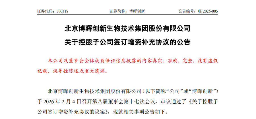 2月5日,创业板上市公司博晖创新(300318)连续发布多条公告,披露了董事会审议通过的两项重要议案,涉及与控股股东的关联交易以及对多年未决业务承诺的重新安排,展现出公司在治理结构与业务推进上的双重调整。
