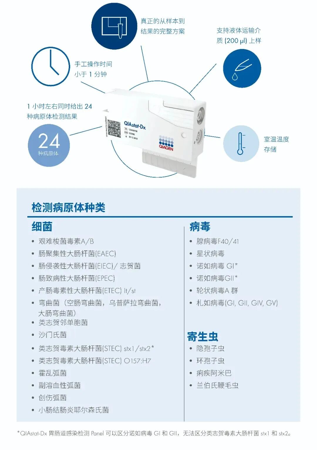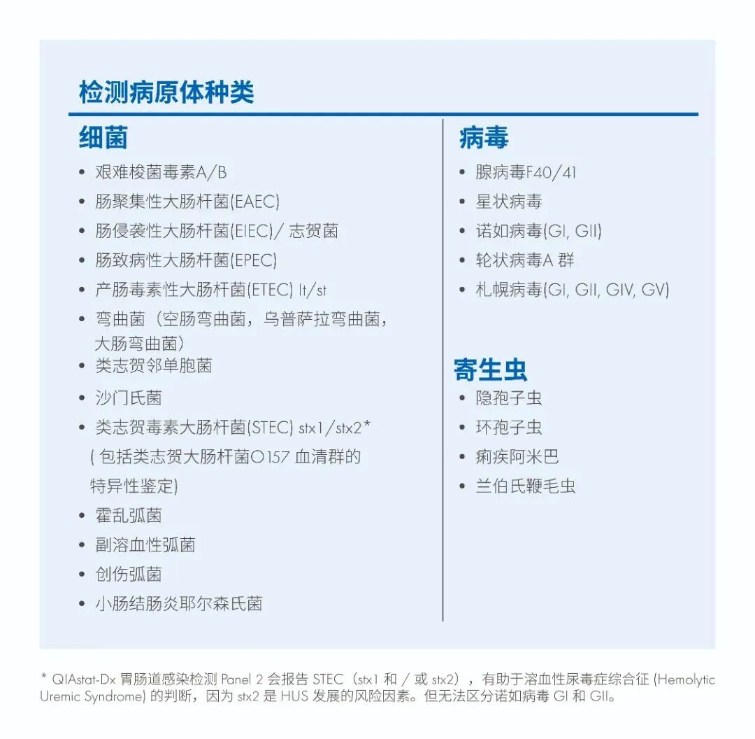 (纽约讯)Qiagen公司周二宣布,美国食品药品监督管理局已批准其QiaStat-Dx胃肠道检测组合在QiaStat-Dx Rise症候群分子检测平台上使用。实验室现可在今年9月获FDA批准的自动化高通量检测系统QiaStat-Dx Rise上运行呼吸道及胃肠道检测组合。两个平台均采用实时荧光定量PCR技术,可通过单次检测识别引发相似症状的多种病原体,同时提供针对特定病原体群的"迷你"检测组合。此次获批的胃肠道检测产品包括:QiaStat-Dx Gastrointestinal Panel 2(二代胃肠道检测组合),可从单份粪便样本中检测16种细菌、病毒及寄生虫病原体,涵盖具临床意义的产志贺毒素大肠杆菌亚型(如stx2f);以及QiaStat-Dx GI Panel 2 Mini B与Mini B&V(迷你B型与迷你B&V型检测组合),可针对性检测包括产志贺毒素大肠杆菌在内的五种消化道病原体。