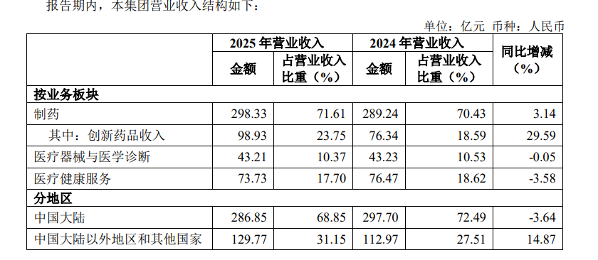 2025年,公司创新药品实现收入98.93亿元,同比增长29.59%,占制药业务收入比重提升至33.16%,较上年提高6.77个百分点。其中,佩金、奥康泽、奕凯达等核心产品增速均超过30%,汉利康、汉曲优、汉斯状等产品收入保持稳定增长。