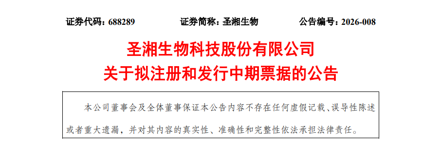 4月8日晚间,圣湘生物科技股份有限公司(以下简称“圣湘生物”)发布公告称,公司董事会已审议通过《关于拟注册和发行中期票据的议案》,拟向中国银行间市场交易商协会申请注册发行不超过**10亿元(含10亿元)**的中期票据,期限不超过5年。