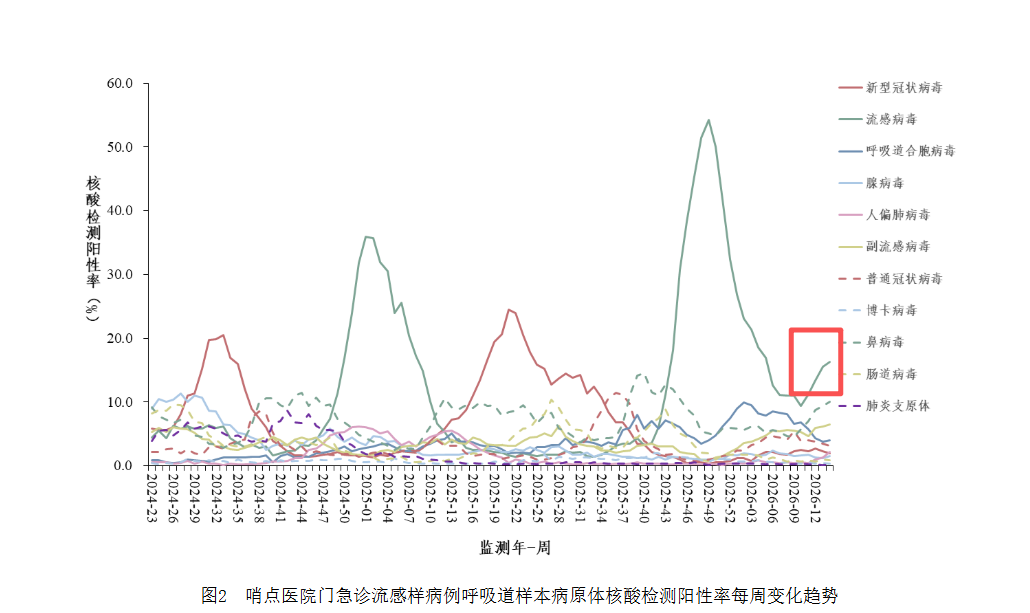 除流感病毒外,其他呼吸道病原体也呈现不同程度的活跃: