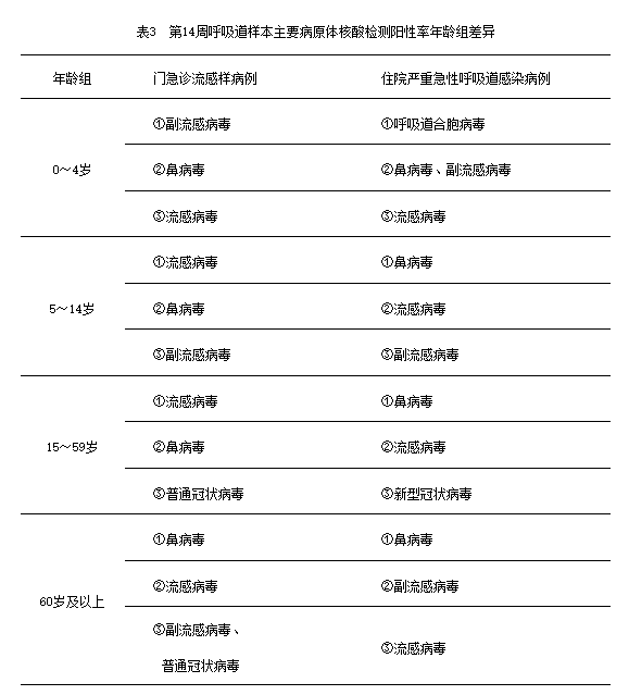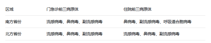 60岁及以上:门急诊以鼻病毒为主,住院以鼻病毒和流感病毒为主。