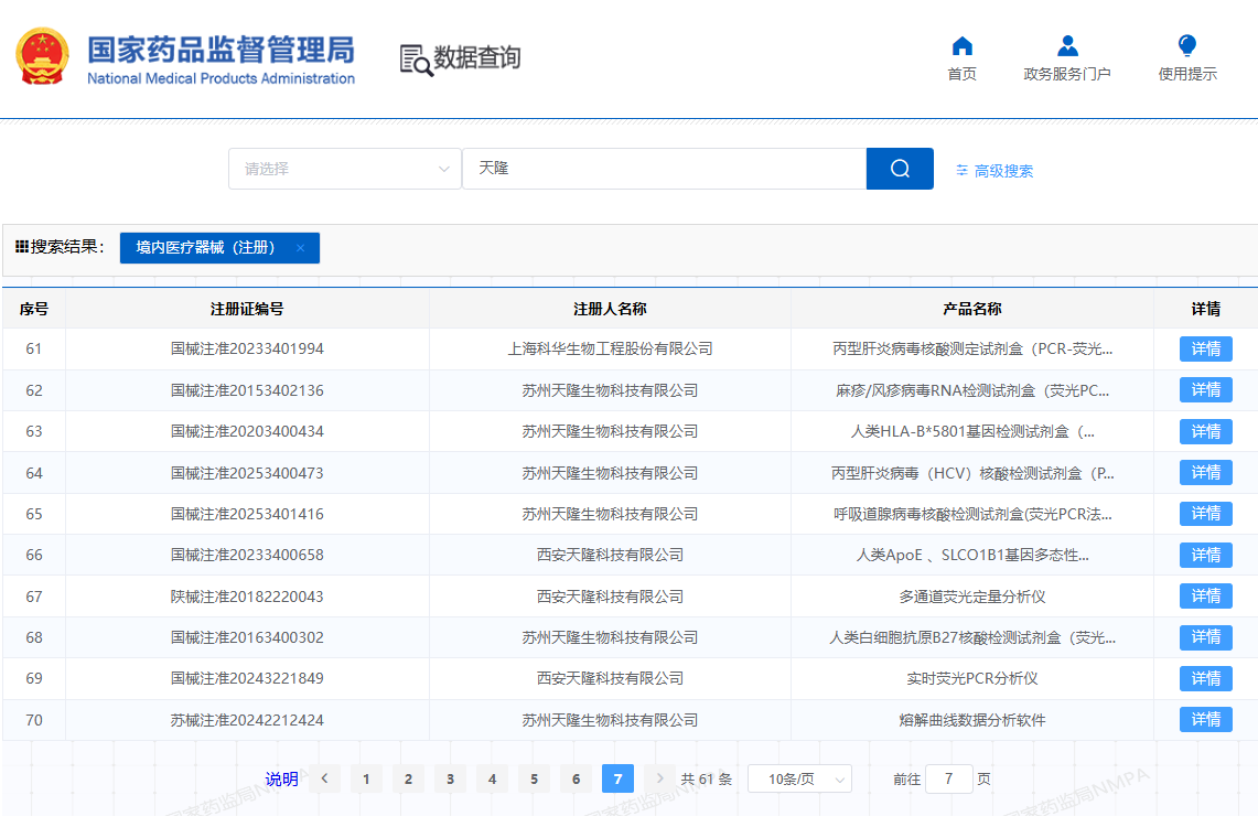 最近在整理国内分子诊断企业产品数量的时候,忽然发现天隆科技医疗器械注册(备案)已达90余个,其中,三类PCR试剂注册证40多个!!!这还是我们以前认识的核酸提取及PCR仪龙头么?怎么PCR试剂注册证也拿了这么多!我相信绝大多数业内同仁的第一反应是:PCR仪、提取仪。没错,这个印象非常准确。天隆科技在PCR仪、提取仪领域的地位确实是毋庸置疑的。从核酸提取仪到荧光定量PCR仪,从经典机型到新一代产品,天隆的仪器几乎遍布全国大大小小的临床及疾控分子诊断实验室。尤其是在疫情期间,天隆的提取仪和扩增仪更是成为无数实验室的“标配”,市场保有量达到一个相当惊人的数字。多个第三方统计国内招标数据,天隆核酸提取设备连年位居TOP1,PCR设备也多年位居国产设备TOP1。“天隆的机器好用、稳定”——这是我在很多检验科老师那里听到的评价。仪器做得好,这已经是行业共识。都说一流的企业做标准,近些年来,天隆科技也多次牵头或参与提取试剂、提取仪及荧光PCR仪等国家及行业标准的起草制定。但正因为仪器光环太耀眼,很多人下意识地把天隆定位成一家“仪器公司”,而忽略了它另一个重要身份——试剂厂商。仔细研究天隆的试剂菜单,能够发现一个清晰的产品布局逻辑:第一层:肝炎系列——基本盘