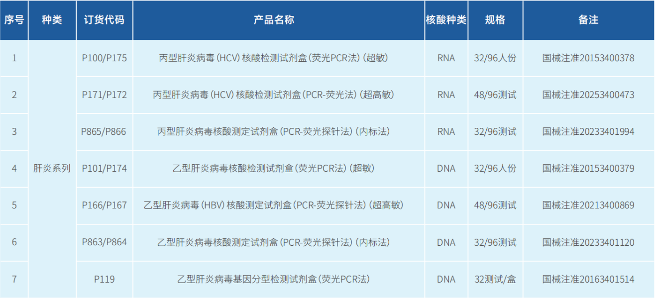 肝炎核酸检测是分子诊断的经典战场。天隆在这里的布局非常扎实: