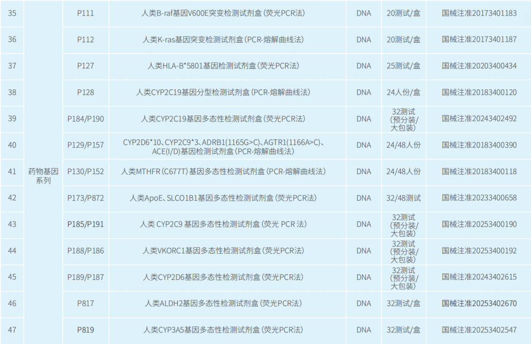 产品齐全,乙肝、丙肝的超敏试剂盒各有两套不同的技术路线产品,从普通超敏到内标法,规格齐全,甚至还有HBV基因分型检测试剂盒。这意味着什么?意味着不管客户是基层医院还是大型三甲,是初筛需求还是精准定量需求,天隆都能提供对应方案。这种产品矩阵的厚度,是需要多年积累才能做到的。如果说肝炎系列是“守成”,那呼吸道系列就是“进取”的典型代表。看看这份清单:新冠、甲流/乙流、呼吸道合胞病毒、呼吸道腺病毒、肺炎支原体、百日咳杆菌、结核分枝杆菌……尤其值得关注的是,这些产品的注册证号大多是2023、2024甚至2025年的新证。这说明天隆在疫情之后并没有停下脚步,而是迅速把技术和渠道优势转化成了合规的产品矩阵。这种拿证速度和覆盖广度,在国产厂商中是相当能打的。第三层:优生优育与药物基因——悄悄做起来的“潜力盘”沙眼衣原体、淋球菌、解脲脲原体、巨细胞病毒、风疹麻疹、B族链球菌……优生优育相关病原体检测基本齐了。而药物基因这边,CYP2C19、CYP2C9、CYP2D6、MTHFR、ApoE、SLCO1B1、ALDH2……叶酸代谢、氯吡格雷、他汀、硝酸甘油这些临床最常用的药物基因检测项目,注册证也都拿到手了。这些产品可能不像呼吸道那样“爆款”,但它们是分子诊断进入临床常规诊疗的“毛细血管”。以药物基因为例,随着国家药监局报道的药品不良反应报告逐年增加,如何进行个体化用药成为临床关注的热点。而药物基因检测无疑是助力临床精准用药,降低不良反应的重要手段,也是未来分子诊断市场的增长点之一。天隆在这些领域的布局,说明它的目标不只是做一个卖仪器的公司,而是要真正渗透到临床检测的各个应用场景中去。HPV系列从16+2到21分型,从高危型到具体分型,产品线完整。EB病毒、BRAF V600E、K-ras、HLA-B27、SMA……这些项目单独拿出来可能不如传染病那么“大众”,但它们在特定科室的需求非常刚性。能做这些产品,说明天隆在试剂研发上已经具备了很强的平台化输出能力。很多做仪器的公司都想做试剂,但真正能把试剂产品线做到这个丰富程度和拿证速度的,屈指可数。第一,仪器装机量就是天然的渠道壁垒。全国那么多实验室用着天隆的仪器,这些仪器本身就是试剂导入的最佳入口。以前是“有仪器没试剂”,现在是“仪器和试剂都准备好了”。第二,拿证节奏踩得很准。呼吸道产品在后疫情时代集中拿证,药物基因在精准医疗大背景下逐步补充,这些时间点的把握说明市场策略是清晰的。第三,产品规格设计接地气。32测试、48测试、96测试多种规格并行,预分装和大包装都有,这充分考虑了不同层级医院的实际用量差异,不是拍脑袋做产品。翻完天隆的试剂清单,我最大的感受是:不要用老眼光看一家正在快速进化的公司。天隆的仪器地位依然稳固,但它的试剂能力已经不容小觑。对于竞争对手来说,一个既有仪器装机量又有丰富试剂产品线的天隆,显然是更有分量的对手。对于合作伙伴和客户来说,这意味着更完整的解决方案和更稳定的供应保障。被低估的天隆,正在用一张张注册证告诉行业:我不只是做仪器的。本文基于公开信息撰写,相关注册证信息均来自国家药监局公开数据。声明:本微信注明来源的稿件均为转载,仅用于分享,不代表平台立场,如涉及版权等问题,请尽快联系我们,我们第一时间更正。