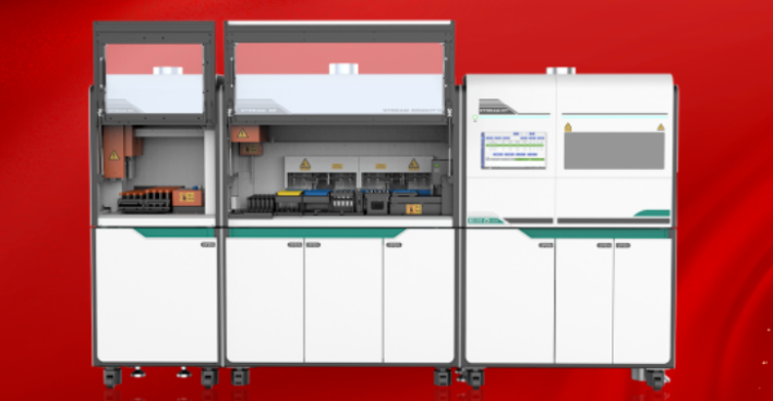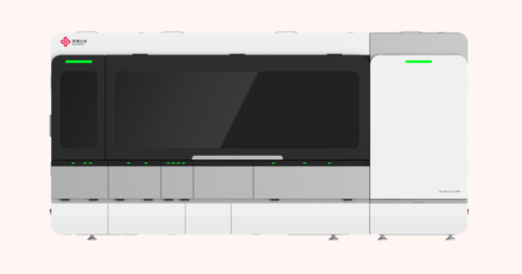 伯杰医疗的这款流水线从产品定位上看,这款产品自称为分子诊断实时检测流水线,集样本分杯、核酸提取、体系配置、PCR扩增及结果分析为一体的全流程、全自动核酸检测系统。此前在展会上见过这台机器,整体机型体积稍微偏大,但是其整合的功能模块足够多,且通量足够大,所以整体看优势还是比较明显的。而从最近伯杰的产品战略上看,其也有意向将这台流水线进行开放化,打造成未来分子诊断实验室的流水线平台。08瀚辰光翼—GenePrecision 2000系列