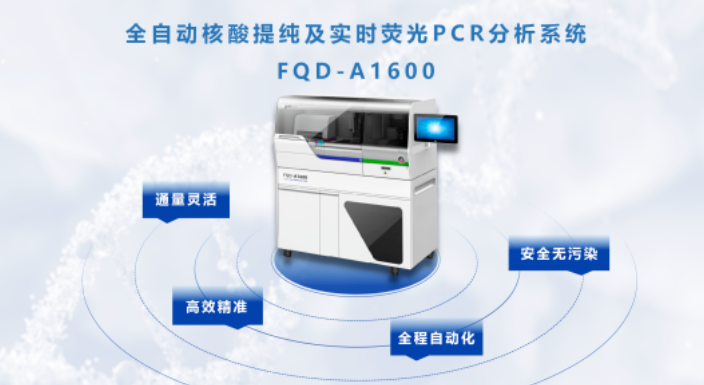 安普利的这款设备在2015年获得药监局的批准,是国内最早出现的核酸检测一体机,虽然体积有些庞大,但在2015年所有都还在犹豫要不要做全自动核酸提取仪时,安普利的全自动核酸提取及检测一体机就已经面世了,但这些年来却一直不温不火。从标本录入开始到PCR定量出报告全程自动化,可在3小时内完成96个样本的检测。