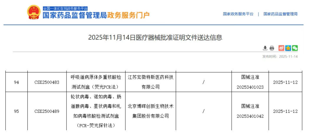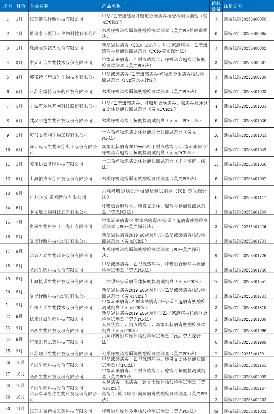 今年以来,呼吸道病毒核酸检测领域已累计获证