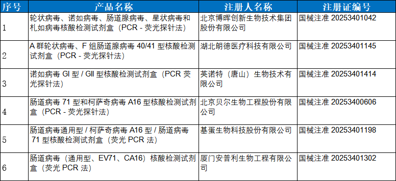 轮状病毒、诺如病毒、肠道腺病毒、星状病毒和札如病毒核酸检测试剂盒(PCR-荧光探针法)国械注准20253401042