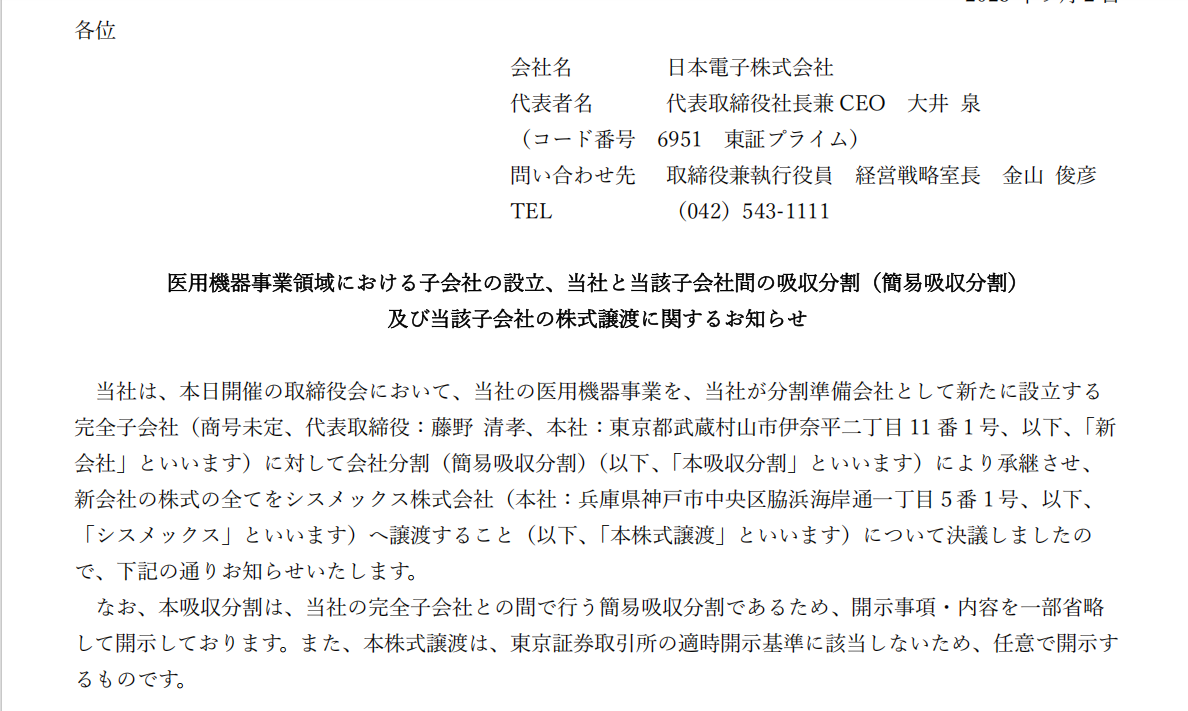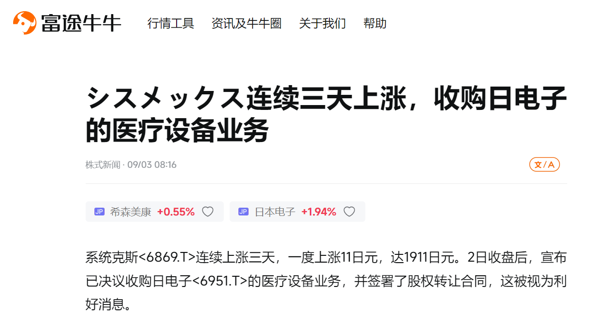 据富途牛牛消息,希森美康,近日宣布已决议收购日电子的医疗设备业务,并签署了股权转让合同。