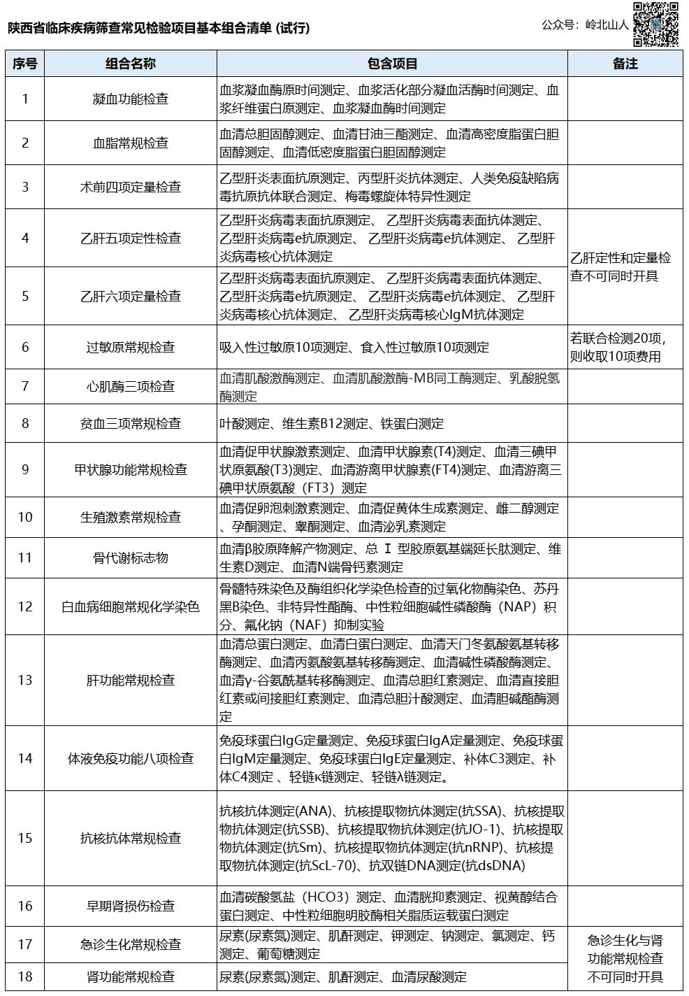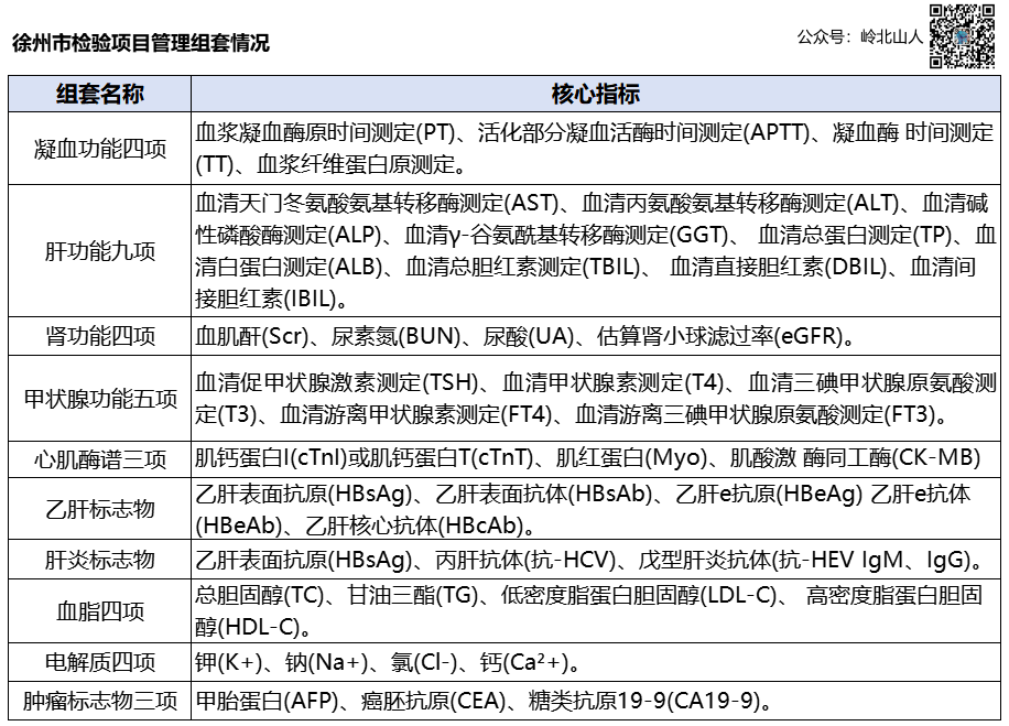 这一政策直接冲击了IVD企业,集采只是降低价格,而套餐解绑是直接剔除检验项目,对医院而言,剔除捆绑的非必要项目,使单次检测收费金额大幅降低,冲击了检验人的收入结构,传统检验科绩效与检测套餐数量及金额挂钩的模式难以为继。根据浙江省2024版医保目录中的套餐组合,检验一共有15个套餐类别。据了解,随着检验项目管理的推进。目前,浙江的医疗机构只能选择这15个套餐进行项目开展。根据套餐设置,生化常规16项,单独的肝功8项,血脂4项,心肌酶4项,肾功3项。免疫类甲功5项,肿标只剩3项:含癌胚抗原测定(CEA)、甲胎蛋白测定(AFP)、糖类抗原测定CA19-9。7月30日,徐州市卫健委发布通知,关于加强医疗机构临床检查检验管理的通知,再次将检验项目组套情况进行明确。组套拆解与设置:内部组套应拆尽拆,放射检查原则上不设套餐;参照市卫健委制定的基础检验组套(详见下表);确需新增组套的,经管理部门会同临床、医技科室论证后,按 "最少够用" 设置并院内备案。在明确的套餐中,凝血四项,肝功八项,肾功三项,甲功五项,心肌酶三项,乙肝五项,肝炎三项,血脂四项,电解质四项,肿标三项。9月9日,北京市卫生健康委员会正式印发《常用检验项目医嘱组套专家建议(2025年版)》。这份重磅文件不仅首次在地方层面系统落实“最少够用”原则,还创新性地推出27套标准化检验组合,为医生开单提供了清晰、权威的实操指引,预计将彻底改变现有的检验医嘱模式。此次建议的一大亮点,是通过梳理临床高频检验场景,制定了27个标准化检验组套,涵盖临床血液、临床体液、临床化学、临床免疫、临床微生物5大专业,覆盖从基础检查到专科诊断的全流程需求。北京的套餐,抛开了常规检测的模式,如将前白蛋白PA和总胆汁酸TBA也加入到肝功套餐中,这和常规的肝功八项也不一致。另外,将呼吸道六联检也并入套餐,可谓是从临床出发,不拘泥于形式。9月16日,陕西省卫健委发布《陕西省临床疾病筛查常见检验项目基本组合清单(试行)》,设置18个套餐组合。加大对各级医疗机构检验项目开具情况监督检查力度,坚决纠治医疗机构重复检验和重复收费问题。虽然这些组套并非 “一刀切” 的强制要求,而是为医疗机构提供 “参考模板”,同时允许机构结合自身临床需要和专科特色进行调整。但在实际落地的过程中,仍然存在不确定性。