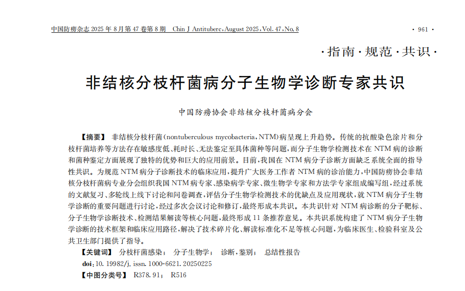8月5日,中国防痨杂志发布《非结核分枝杆菌病分子生物学诊断专家共识》。