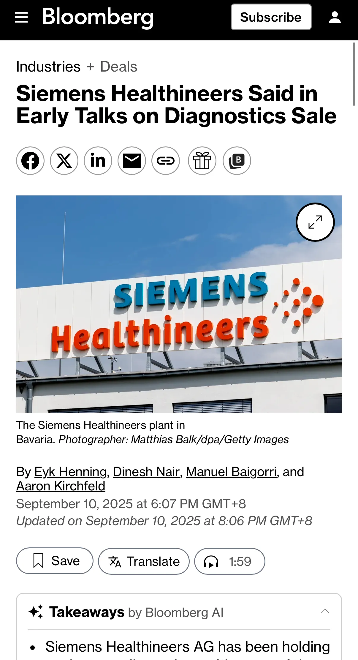 近日,据彭博社报道,西门子股份公司正在考虑将其在法兰克福上市的西门子医疗Siemens Healthineers AG的大部分控股股份进行拆分。据消息人士称,西门子集团一直在与潜在顾问讨论其在西门子医疗中71%股份的退出方案,西门子正在考虑采用一种结构,将部分西门子医疗的股份作为股息分配给其投资者,同时努力限制税务影响。此前9月10日,彭博社消息称西门子医疗正与黑石集团、CVC 资本及 KKR 等全球顶级私募股权机构就诊断业务潜在出售进行初步接触,市场估值或超过60亿欧元(约合500亿元人民币)。总部位于巴伐利亚州埃尔兰根的西门子医疗于两年多前开始评估诊断业务。体外诊断业务通过检测血液和组织样本来识别疾病和感染。影像业务和专注于癌症护理技术的瓦里安业务不属于出售范围。在中国市场,西门子诊断在面临集采和进口替代的背景下,业绩出现了下滑。该企业第三季报显示,断板块在中国遭遇“低双位数营收下滑”。西门子医疗是全球领先的医疗科技公司,总部位于德国埃尔朗根,2018年3月于法兰克福证券交易所独立上市。2021年完成对瓦里安的收购后,西门子医疗拥有了医疗科技领域最全面的产品组合,业务覆盖医学影像、体外诊断、癌症诊疗和微创治疗等众多领域。2024财年(截至2024年9月30日),西门子医疗的总营收为224亿欧元,全球员工约72,000名。