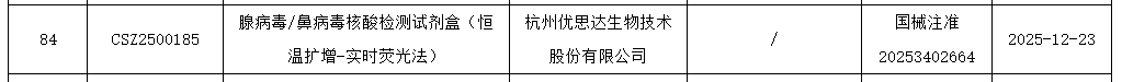 (3)优思达:腺病毒/鼻病毒核酸检测试剂盒(恒温扩增-实时荧光法)