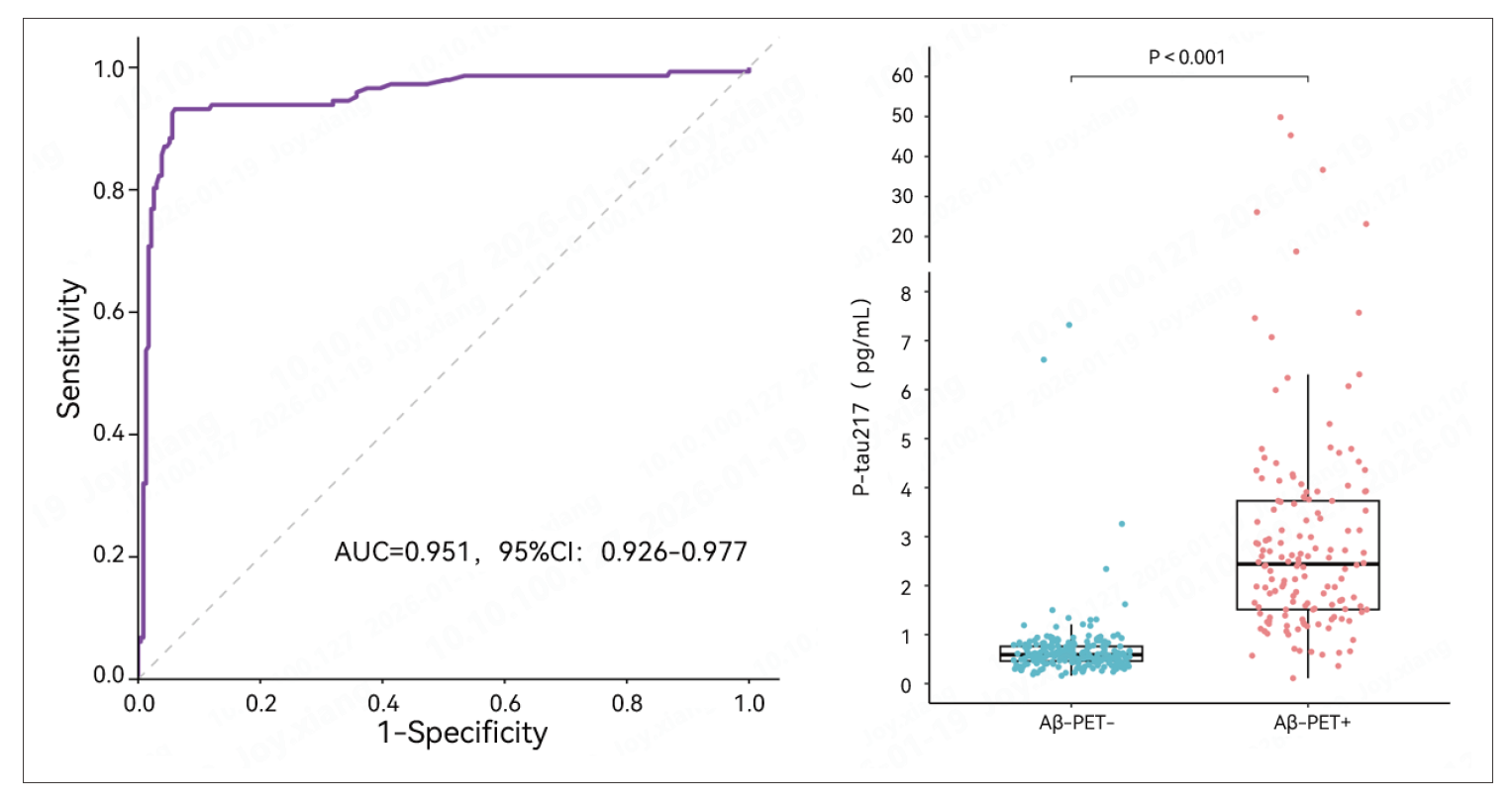 菲鹏AD血检方案从研发到验证全流程对标国内外权威指南,血浆p-tau217经大规模真实世界队列验证,灵敏度达91.84%,特异性达94.40%,可精准区分Aβ-PET阳性与阴性个体,完全满足指南确诊级性能要求。